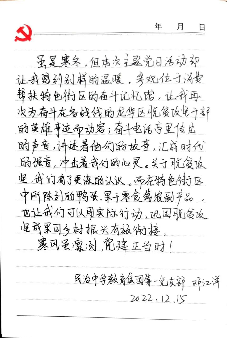 通過此次主題黨日活動,不僅豐富了我校黨內(nèi)組織生活,增強了我校黨支部與民治中學(xué)教育集團第一黨支部之間的交流學(xué)習(xí),還加強了黨員黨性錘煉,以實際行動支持鄉(xiāng)村振興,鼓勵廣大黨員干部不斷提高自身,為鄉(xiāng)村振興盡一份力!