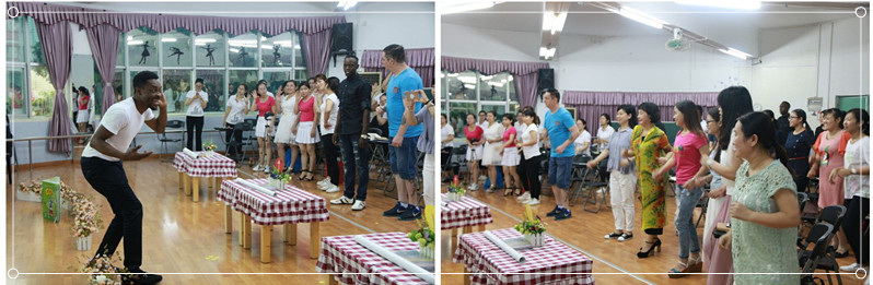 在“我劃你猜”(I do,you guess)和“你畫我猜”(You draw,I guess)的游戲中,巧妙加入綜藝和藝術(shù)的元素,啟發(fā)老師英語教學(xué)當(dāng)中,通過肢體語言(Body Language),豐富教師的肢體語言和詞匯,同時增進(jìn)老師間的交流。