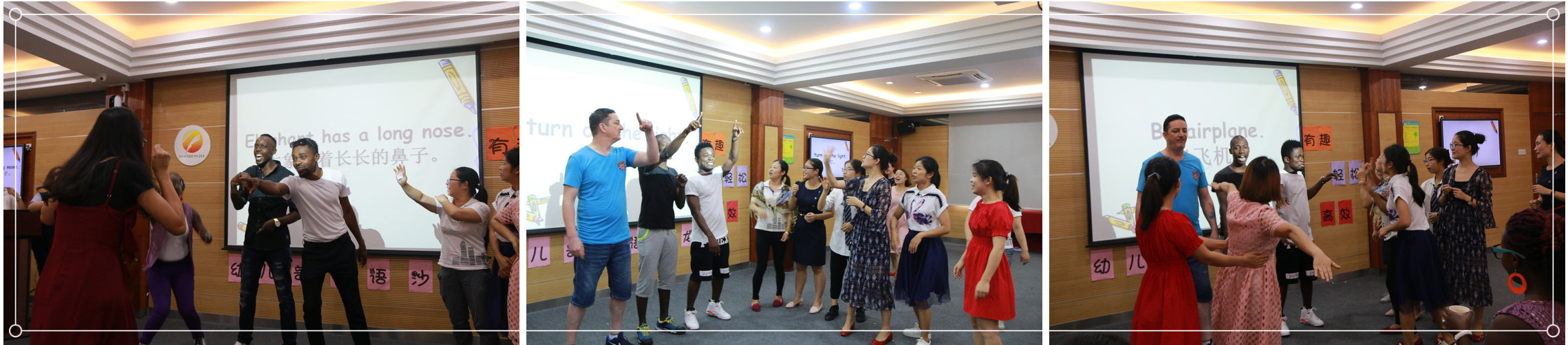Before the activity,our foreign teacher play an interesting warming chant with us.