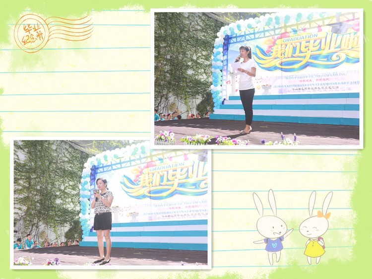 我們的饒婷園長、夏宏艷園長為孩子們頒發(fā)畢業(yè)紀(jì)念冊。
