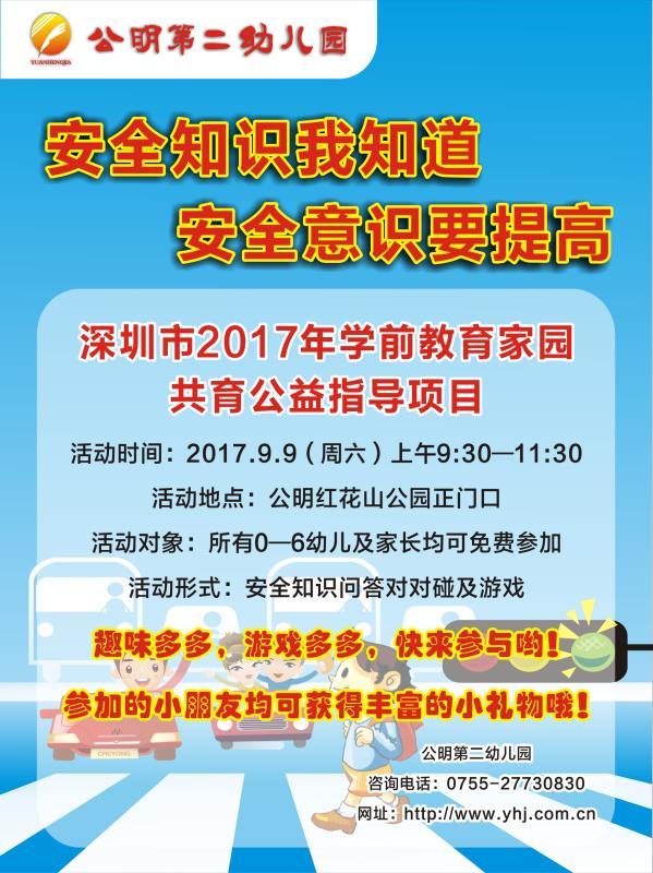 深圳市2017年學前教育家園共育公益指導項目——安全知識我知道 安全意識要提高