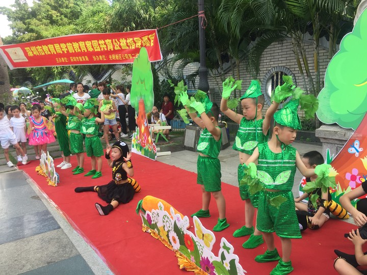 2017年9月23日上午,為多元集聚社會資源共同推動科學保教、家園共育、提升學前教育質量,提高學前兒童家長的科學育兒能力,光明新區(qū)公明第二幼兒園在紅花山公園開展了深圳市2017年學前教育家園共育公益指導項目的活動。