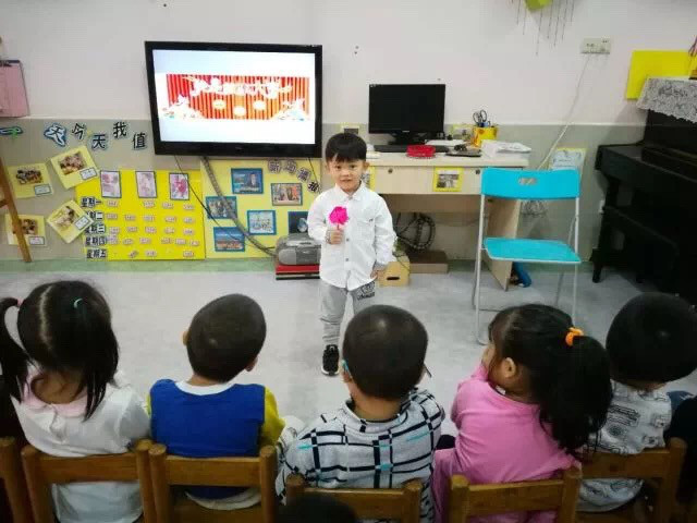 我愛我的家,家有爸爸和媽媽;我愛我的家,家有兄弟和姐妹,我愛我的家,家有老師和同伴;讓愛天天住你家,讓愛天住我家,讓愛天天住在燕川幼兒園的大家庭里——《讓愛住我家》。