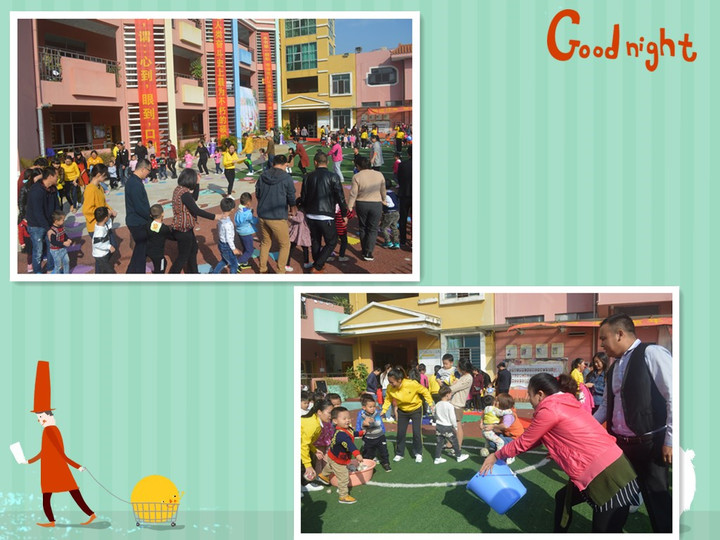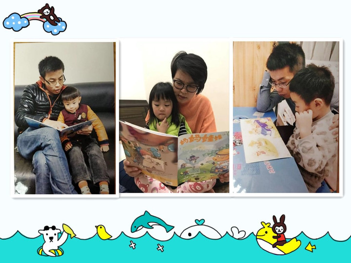 建議家長(zhǎng)將每天睡前半小時(shí)時(shí)間定為“家庭讀書時(shí)間”,開展每天晚上30分鐘“親子共讀”,除此之外我們每天利用英語互動(dòng)環(huán)節(jié),還有故事爸媽進(jìn)校園分享;促進(jìn)父母與子女間的交流,共同成長(zhǎng)。