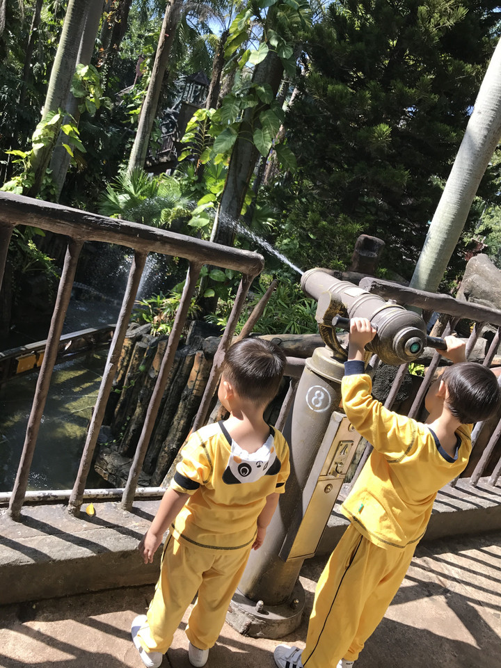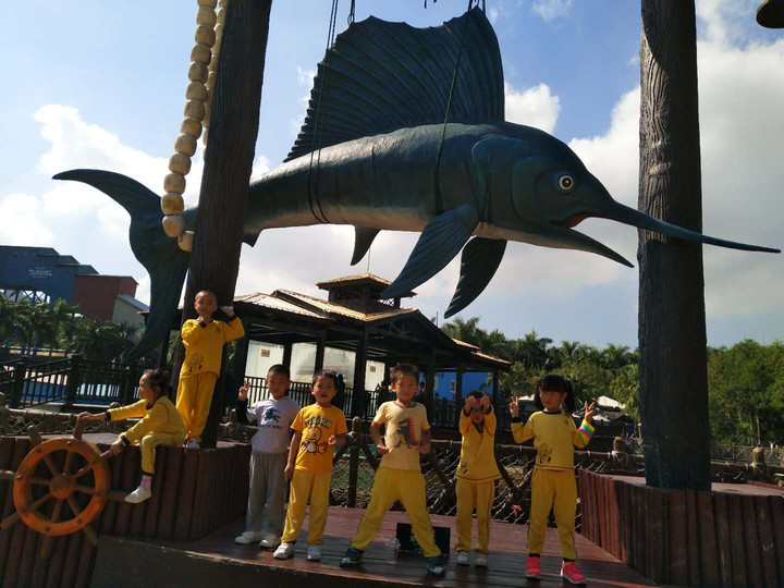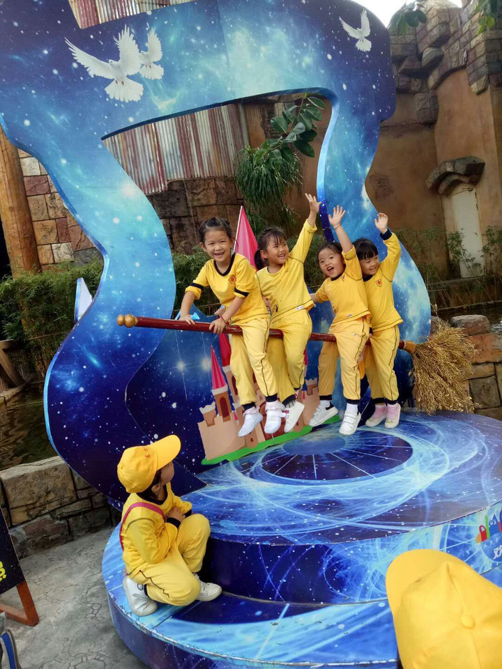 我們從主題園區(qū):西班牙廣場(chǎng)、魔幻城堡、冒險(xiǎn)山、金礦鎮(zhèn)、香格里拉雪域、陽光海岸、颶風(fēng)灣、歡樂時(shí)光。接著來到《幻城》、3D影院、四維電影。每個(gè)幼兒臉上充滿了好奇,他們的心情是全然不同的,看著孩子們一張張?zhí)煺娴男δ?,此時(shí)我也被這種氛圍感染了!