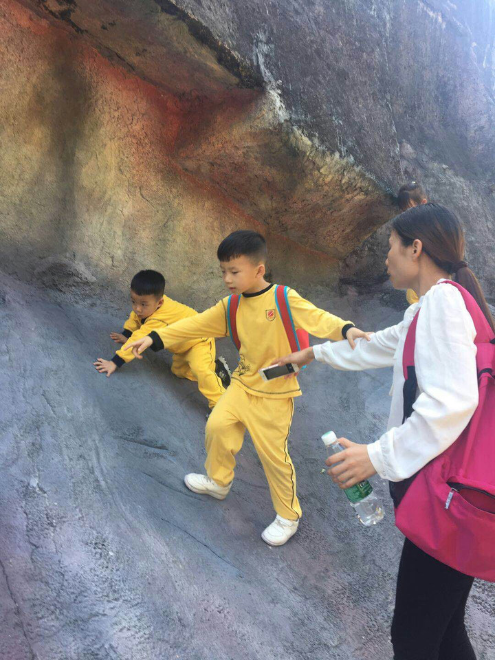 這些孩子們?cè)谂d奮地吵鬧著,你一言我一語,好像有講不完的話,話題肯定是圍繞著“秋游”。在孩子們的期待中我們終于出發(fā)了,一共7輛旅游大巴,共316人。氣勢(shì)很壯觀!一路上,孩子們的歡歌笑語此起彼伏,這歡快的氣氛感染著我們每一個(gè)人。