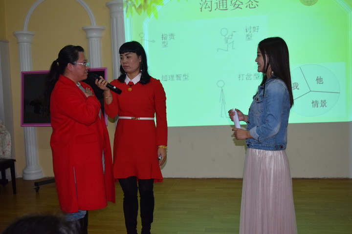 講座開始前,祝老師通過以一個(gè)小游戲開始了親子溝通技巧的活動(dòng),通過這個(gè)小游戲,潛移默化地讓家長知道我們只會(huì)做出熟悉的模式,而不是應(yīng)該的模式。對于我們的孩子,也沒有必須要這樣做的理由。為了讓家長們之間更加熟悉放松,讓家長兩兩面對面,相互溝通,了解對方,通過位置的不斷變化,與不同的家長溝通。接著,祝老師以一段優(yōu)美而傷感的語錄打開了家長們塵封已久的心房,讓家長們不禁紛紛落淚,或許是生活的忙碌,催促我們不斷地往前走,但是有時(shí)候我們卻忘了與我們身邊的人多說說心里話,忘了告訴他們,我很愛她。