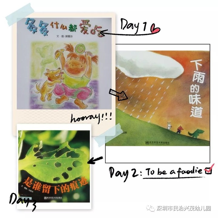 2018年5月-6月,在為期兩個(gè)月中幼兒園開展了三次早期閱讀課例觀摩?;顒?dòng)圍繞三個(gè)不同類型的讀本進(jìn)行開展,小、中、大各推出了3種不同類型讀本課例觀摩,小班故事類《多多什么都愛吃》、中班散文類《下雨的味道》、大班知識(shí)類《是誰留下的痕跡》,重點(diǎn)聚焦語言教育與閱讀教育。