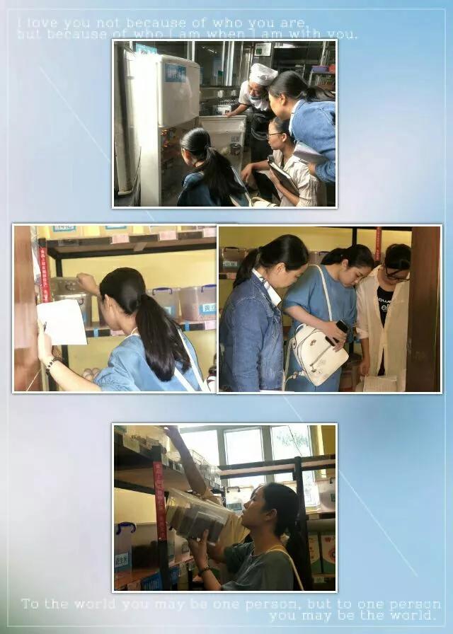 11月1日,集團(tuán)學(xué)前管理中心萬婷婷教研員來到我園廚房,對每一個(gè)角角落落的衛(wèi)生情況認(rèn)真檢查,對每一餐的食品留樣情況詳細(xì)核實(shí),查看食品倉庫的食材出入登記,并一件一件的打開查看保存情況。