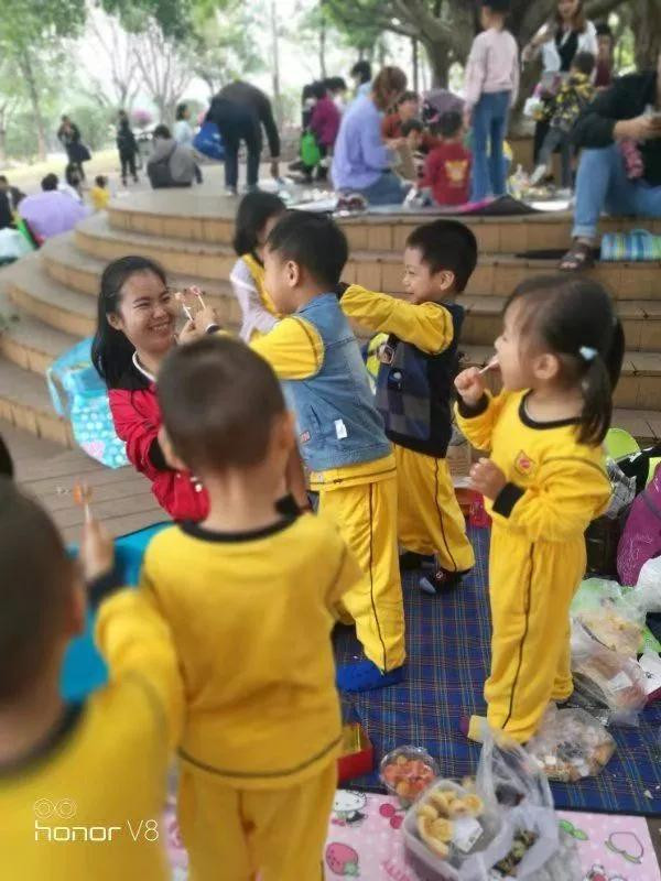 寶貝吃零食的時(shí)候也不忘給最愛的老師分享喲!看我們老師笑得合不攏嘴了。