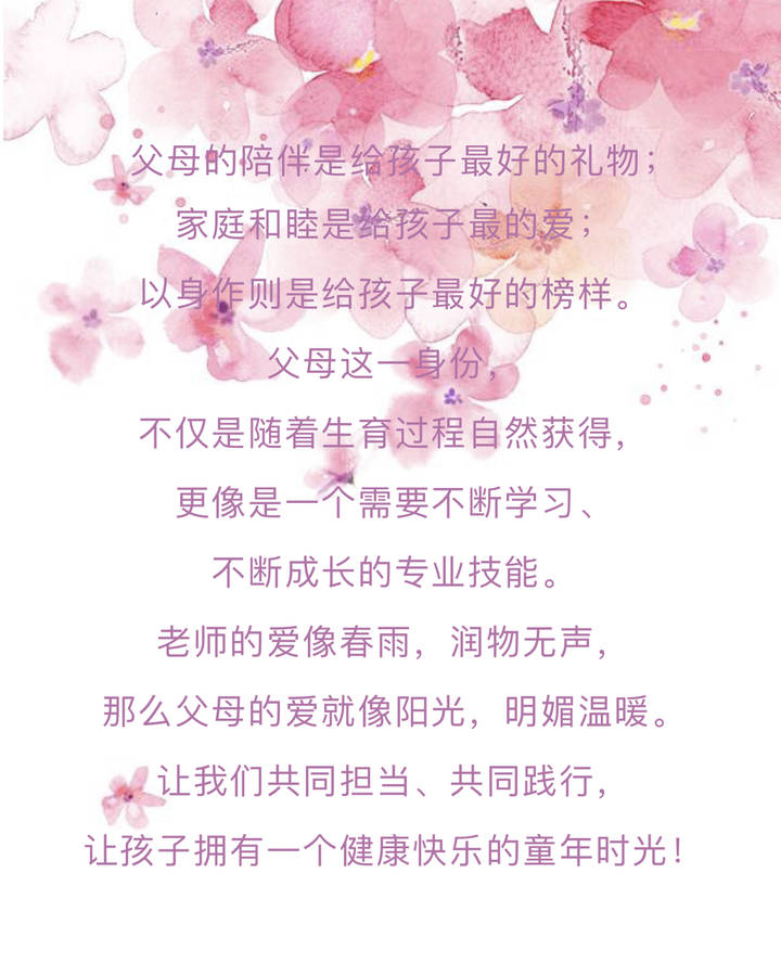 聽說(shuō)神不能無(wú)處不在,所以創(chuàng)造了爸爸媽媽,“爸爸媽媽”這個(gè)詞,只是叫一叫,也會(huì)觸動(dòng)了我們的心弦,在我們的眼里,你們是超人,散發(fā)著無(wú)比巨大的能量,沒有你們做不到的事情。我這么好看,都是你們的功勞!謝謝您們,謝謝您們把我寵成小公主、小王子,雖然這些無(wú)法用語(yǔ)言來(lái)表達(dá)完對(duì)您們的愛,讓我們給你們一個(gè)熱烈的大熊抱吧:謝謝您們,爸爸媽媽您們太棒了!我們一定不會(huì)讓你感到失望的,我會(huì)珍惜和你們?cè)谝黄鸬拿恳豢?,您們是我最愛的人,長(zhǎng)大后,我愿用自己的雙手為您們撐起一片艷陽(yáng)天。