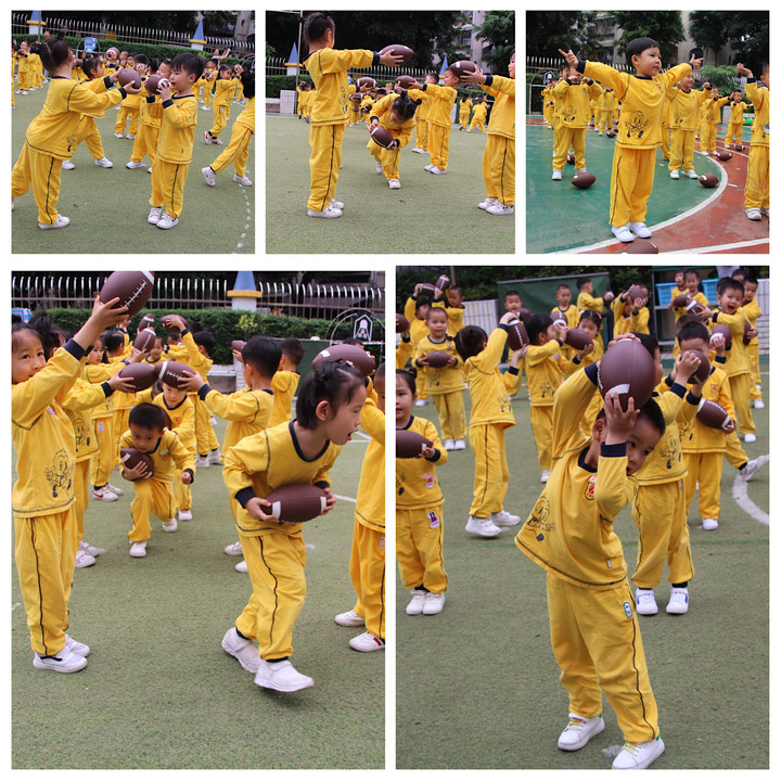 小班早操為器械操《小小聯(lián)盟隊(duì)》為原創(chuàng)早操,根據(jù)幼兒的年齡特點(diǎn),我們選取了“橄欖球”進(jìn)行早操練習(xí)。在操節(jié)的設(shè)計(jì)中,以“成長(zhǎng)探索”為主題,注重大肌肉與小肌肉發(fā)展的有效結(jié)合,動(dòng)與靜的搭配,同時(shí)在操節(jié)中,鍛煉幼兒的拋接球能力,同伴間的合作能力,使每個(gè)幼兒能在愉悅的氛圍中得到鍛煉。