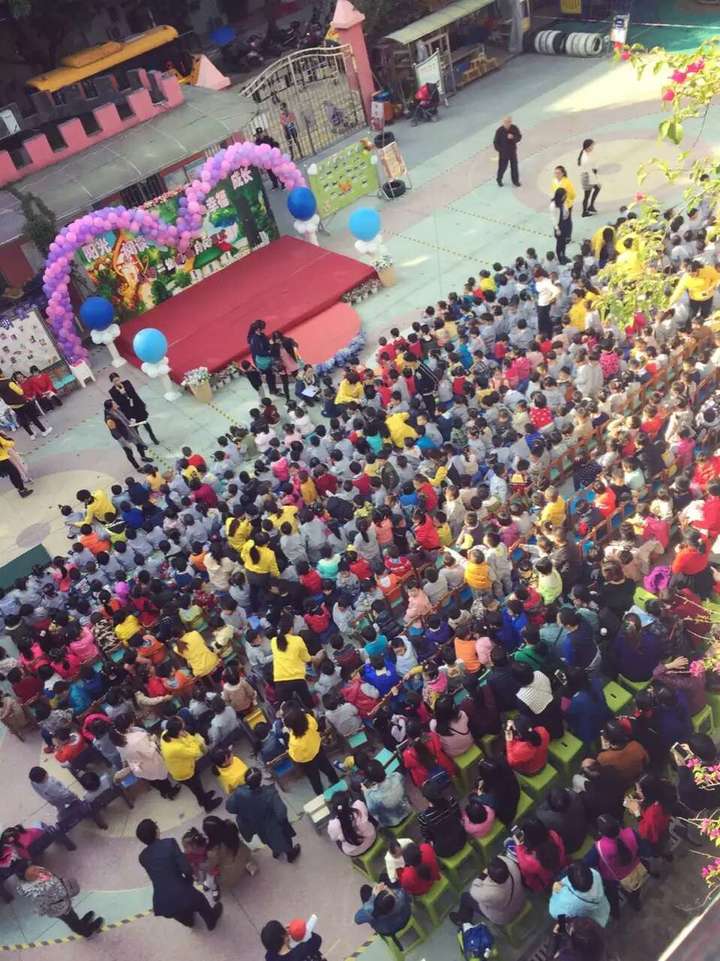 時間到了,我們的小朋友和大人們都就位坐好,等到節(jié)目的開始,整個操場可謂場面壯觀。