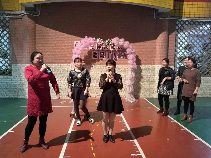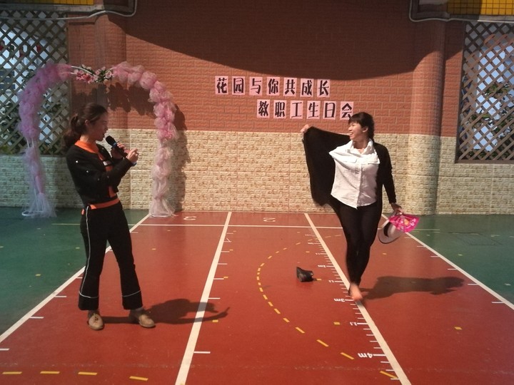 搞笑而歡樂的開場舞串燒,逗得在場的教職工們捧腹大笑,這是一份最奇特的生日禮物。接下來是好玩的游戲時間,這次工會為大家準備了兩個游戲,分別是傳遞吸管和我唱你跳,教職工們分組競賽,大家通力合作、團結一致。場上摩拳擦掌,場下吶喊聲、加油聲不斷。這是一份最特別的生日禮物。緊接著,曾園長、馬主任、大張老師、小張老師為壽星們獻上了最真摯的生日祝福,這是一份最溫馨的生日禮物。