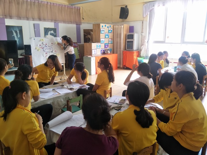 在觀摩活動中,老師們把自己對創(chuàng)意音樂欣賞的理解放在了課堂實踐中。4月19日,集團幼教中心萬老師對我園音樂活動進行觀摩后,做出了點評,對每一個老師做出具體的指導。那么,具體該怎樣上好一節(jié)創(chuàng)意欣賞活動呢?欣賞是以“聽”為主,用身體的各個感官去感受音樂,再用肢體動作、游戲等多種形式來表現(xiàn)音樂。而且在課堂上老師要做到循序漸進,從細到大。那么,欣賞音樂是欣賞音樂里的什么?欣賞音樂可以是欣賞音樂里的情緒、節(jié)奏、民族風、區(qū)式結(jié)構(gòu)以及音樂里面特別的聲音。在萬老師幽默有趣的點評下,讓我們把創(chuàng)意欣賞活動理解得更加透徹,從而能夠創(chuàng)新立意。觀摩教研是讓老師們能快速成長的主要途徑之一,只有通過不斷地思考、實踐、反思、再實踐,才能讓創(chuàng)意音樂活動的水平提高。