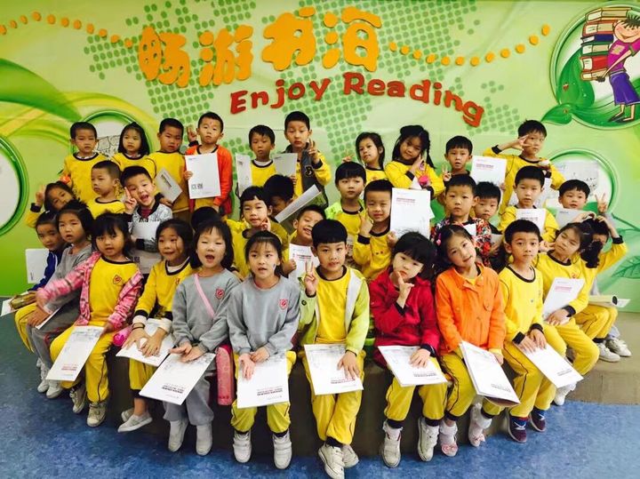 坐在學(xué)校統(tǒng)一安排的大巴車?yán)?,孩子們都很興奮,欣賞著沿途的風(fēng)景,期待著快些到學(xué)校。很快,汽車駛?cè)肓斯髦杏⑽膶W(xué)校的大門,學(xué)校廣闊的操場、高大的教學(xué)樓、整潔的環(huán)境無不吸引著他們的眼球。孩子們的到來受到了小學(xué)老師的熱情歡迎,在老師的帶領(lǐng)下,孩子們首先來到哥哥姐姐們上課的課室,感受了一下小學(xué)上課的氛圍,英語老師用流暢的英文跟孩子們互動的,通過各種游戲讓孩子學(xué)會動物的單詞,小家伙們聽得可認(rèn)真了,仿佛那一刻自己就是一名小學(xué)生。接著孩子們排著整齊的隊(duì)伍參觀了圖書館,孩子們被里面的設(shè)施吸引了,圖書館里為不同年齡孩子們準(zhǔn)備了不同的書籍,我們在圖書館進(jìn)行了班級的合照,孩子們非常的配合!