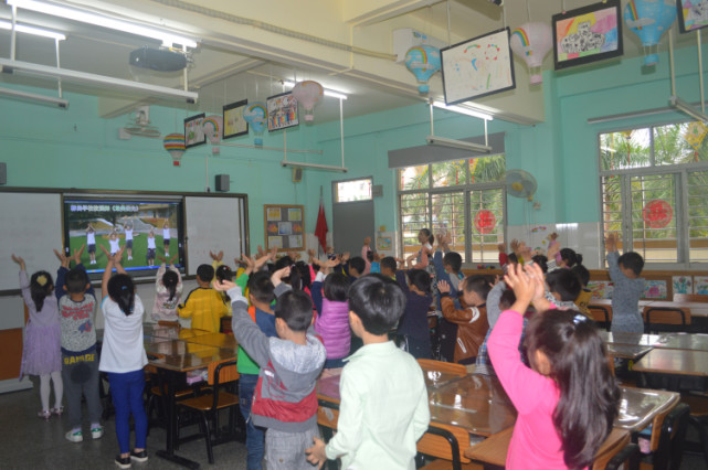 最后,孩子們一起學(xué)習(xí)了標(biāo)尚學(xué)校實驗部校園舞