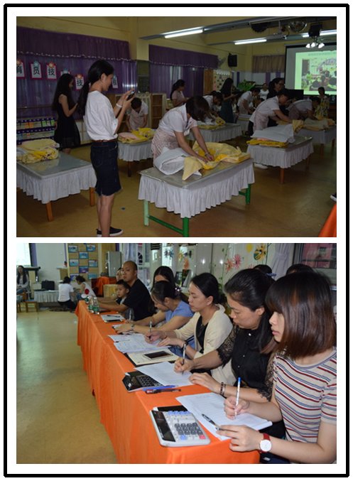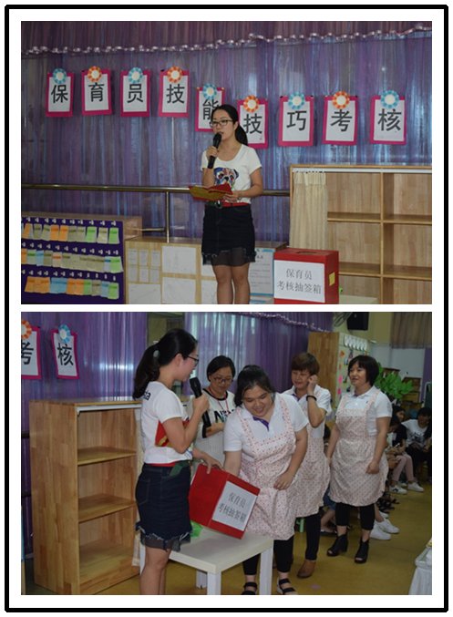 實操考核疊被子、擦桌子,按級組抽簽的方式來決定保育老師比賽的出場順序,由三個級  組的保育組長負責抽簽。
