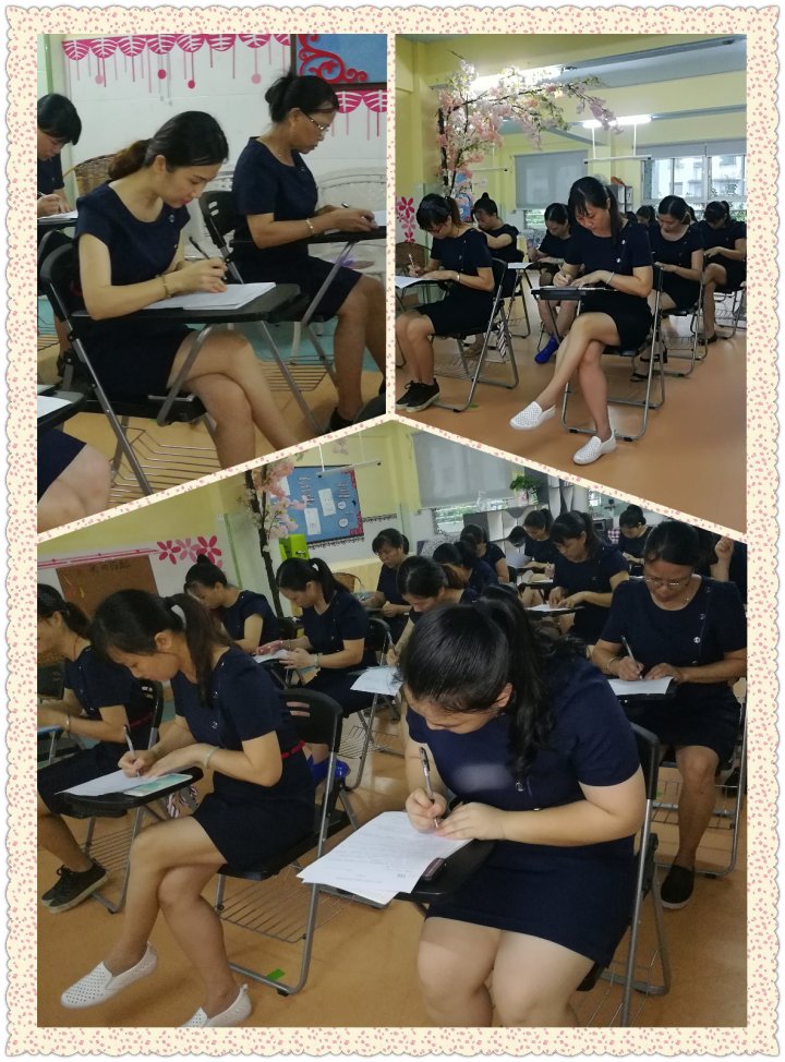 筆試部分:考試試卷為AB卷閉卷考試在技能技巧考核的實操部分,我們邀請了年級家委代表及園領導作為評委。
