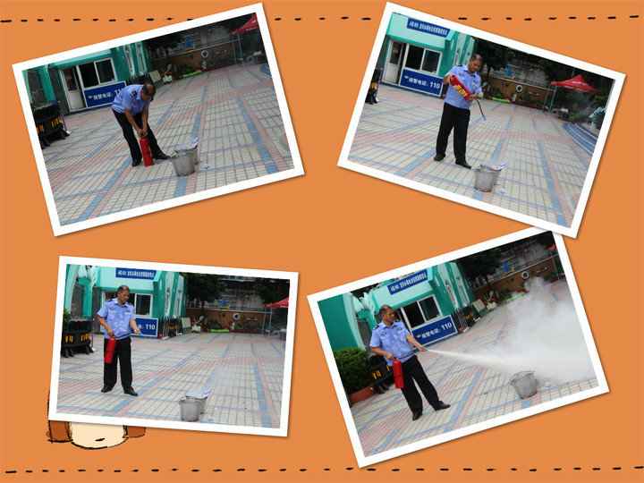 保安叔叔演示滅火器的使用方法