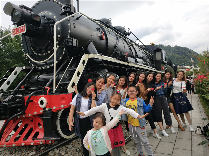 第二站:湞陽坊小鎮(zhèn)——作為標(biāo)志性的老機(jī)車是特意從北方重金買回來的, 這臺長25.5 米,高4.9 米的黑色金剛最初命名為“工農(nóng)型”,1959 年由大連機(jī)車車輛廠與唐山機(jī)車車輛廠聯(lián)合研制。
