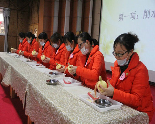 2017年12月27日上午9:30分,長壽區(qū)遠(yuǎn)恒佳實驗幼兒園、遠(yuǎn)恒佳陽光園、遠(yuǎn)恒佳菩提印象園全體保育老師在遠(yuǎn)恒佳教育集團學(xué)前教育中心長壽分部的組織下進行了削水果、疊被子兩項技能競賽。