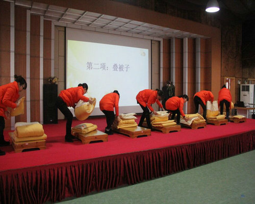 在這一個環(huán)節(jié)中,保育老師們做到了:速度快、動作規(guī)范、擺放美觀!老師們嫻熟的技能獲得評委和同伴的陣陣掌聲。