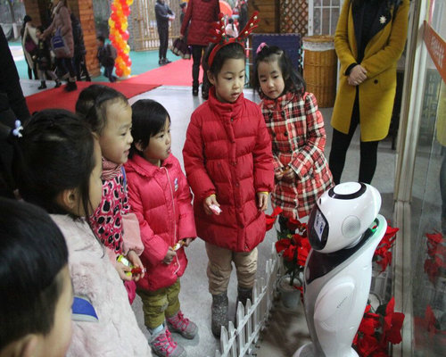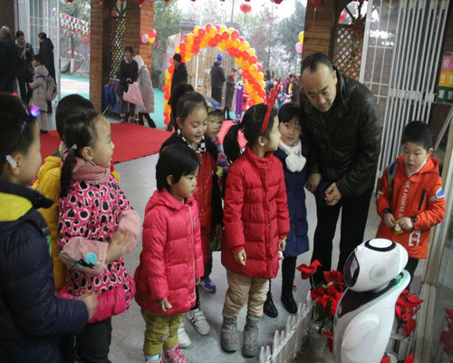 新的一年就要來到了,幼兒園里也來了一位新朋友,他就是機器人“小伊”。小伊也在大廳里迎接我們小朋友和大朋友的到來,孩子們都覺得很好奇,爭先恐后的向機器人“小伊”提問,“小伊”幽默有趣的回答大家的問題逗得大家哈哈大笑。
