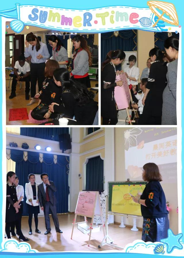 此次教研,通過各園、管理中心先后3次備課,從100多首song和chant中甄選出具有代表性、適宜性、時(shí)代性特點(diǎn)的20首song和chant,各園圍繞“結(jié)構(gòu)、隊(duì)形、移動(dòng)、動(dòng)作參與及互動(dòng)”5個(gè)核心要素創(chuàng)編游戲,通過展示交流,進(jìn)一步優(yōu)化游戲設(shè)計(jì)與組織,提升“晨間英語10分鐘”幼兒的參與度、快樂感和語感。