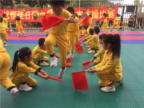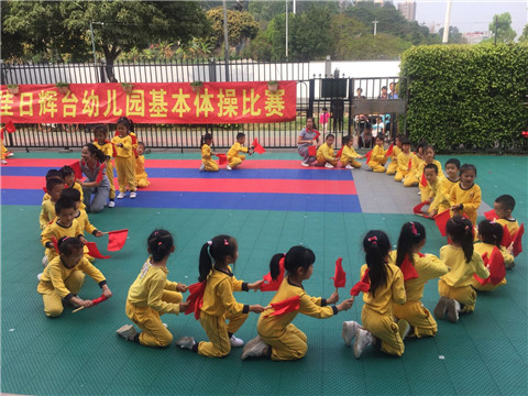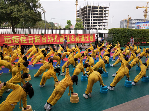 為了給幼兒一個(gè)愉快、健康的童年,幼兒園體能操是根據(jù)幼兒的年齡特點(diǎn),從實(shí)際出發(fā),結(jié)合《綱要》中對(duì)健康領(lǐng)域目標(biāo),大膽探索操節(jié)結(jié)構(gòu),器械的利用、音樂(lè)的選擇、教師的指導(dǎo),將教育理念融入操節(jié)之中。2018年3月27日,遠(yuǎn)恒佳日輝臺(tái)幼兒園舉行了早操比賽活動(dòng),遠(yuǎn)恒佳教育集團(tuán)學(xué)前教育管理中心唐玉萍總監(jiān)、彭雪莉主任、各教研員以及姐妹園教學(xué)主管參加活動(dòng)。日輝臺(tái)幼兒園的老師和孩子們從音樂(lè)選編、器械選擇、動(dòng)作編排、隊(duì)列編排、精神面貌情況等方面進(jìn)行了展示。