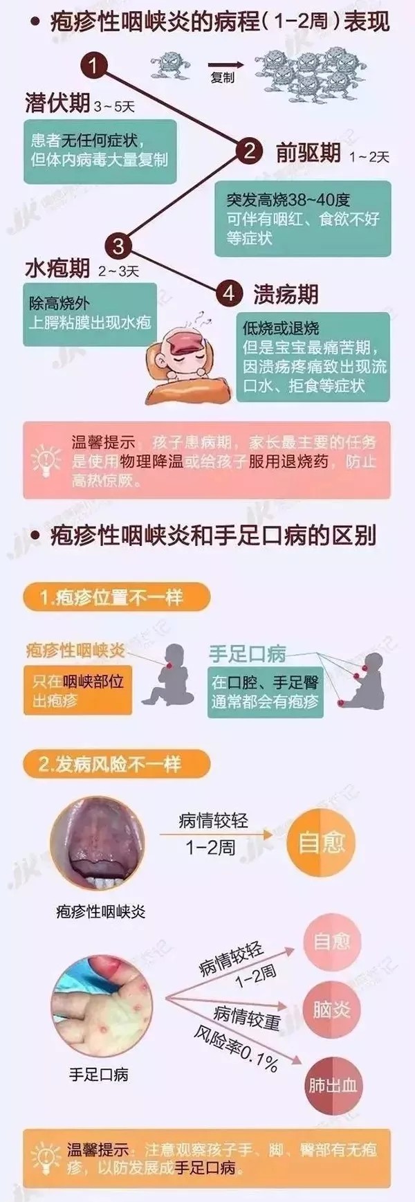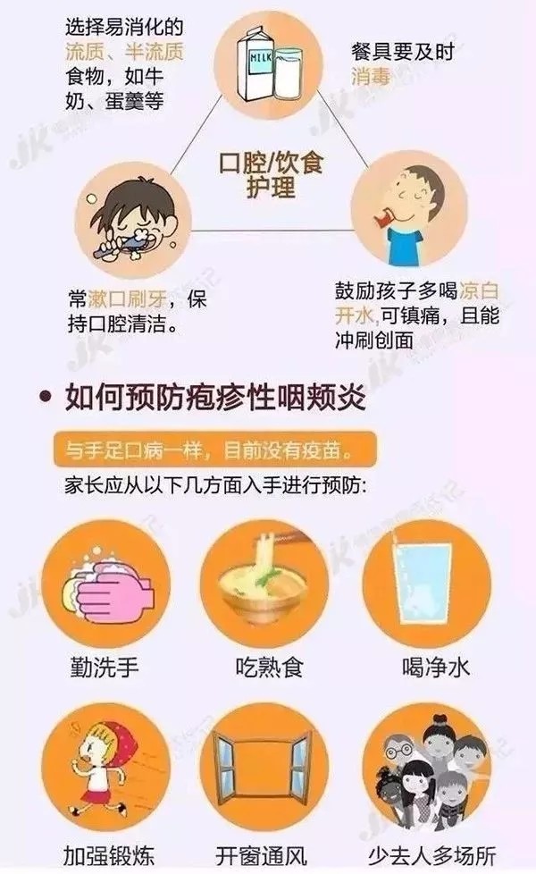 每年到這個時候,都是手足口病和皰疹性咽峽炎的高發(fā)期。皰疹性咽峽炎和手足口病,都是同一類腸道病毒——柯薩奇病毒造成的。為確保幼兒健康,幼兒園給所有家長發(fā)放了有關(guān)預(yù)防手足口病的知識資料;規(guī)范和加強(qiáng)晨、午檢及全日觀察工作;鼓勵幼兒多飲水,全園動員做好安全衛(wèi)生和疾病預(yù)防工作。