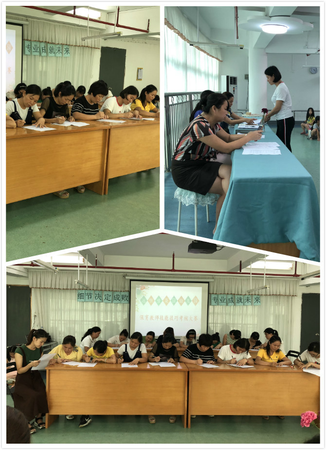 進(jìn)行筆試考核和準(zhǔn)時(shí)交卷的保育老師們