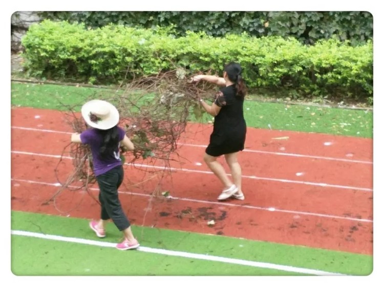 可愛(ài)的園丁們齊心協(xié)力的把掉落的樹(shù)枝清理干凈。