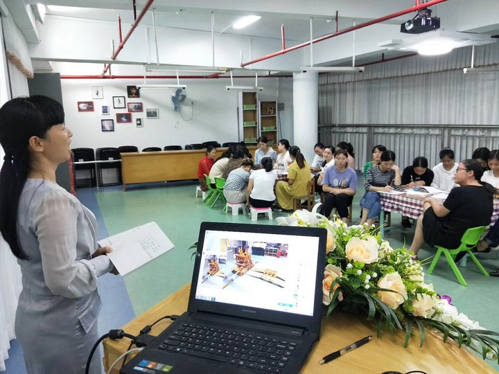 本次比賽是在前期有教研、中期有實踐的基礎上,班級老師精心準備后開展的。晚上6:00,老師們在音體室聽完主持人講解規(guī)則后,回到各自的班級搭建積木。