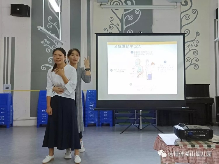 涂醫(yī)生運用PPT詳細(xì)直觀地為幼兒園教職工講解了如何在幼兒園進(jìn)行常見病識別、預(yù)防和處理。指導(dǎo)教師正確處理幼兒擦傷、燒傷、燙傷、止血包扎、觸電、發(fā)熱、高熱驚厥、骨折、氣管異物的方法。什么情況下應(yīng)該打120急救,什么情況下應(yīng)該告知家長。并現(xiàn)場對老師進(jìn)行海姆立克急救法培訓(xùn),通過模擬示范、動作演練,讓老師掌握萬一幼兒在園發(fā)生氣管異物,如何立刻采取有效急救措施,防止意外發(fā)生。