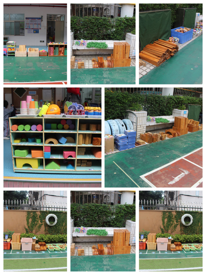比賽前,老師和家長代表將建構(gòu)材料擺放在指定區(qū)域。