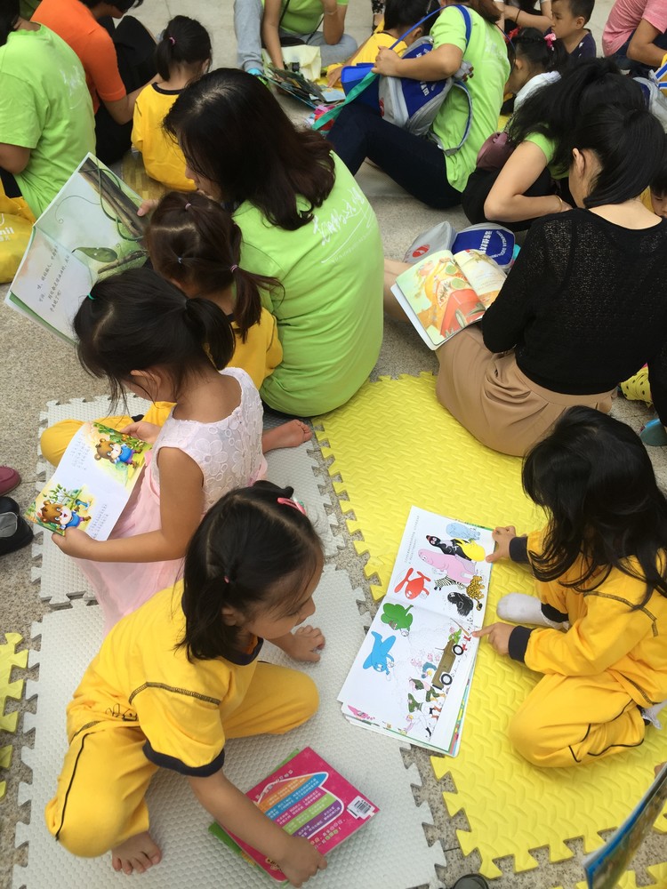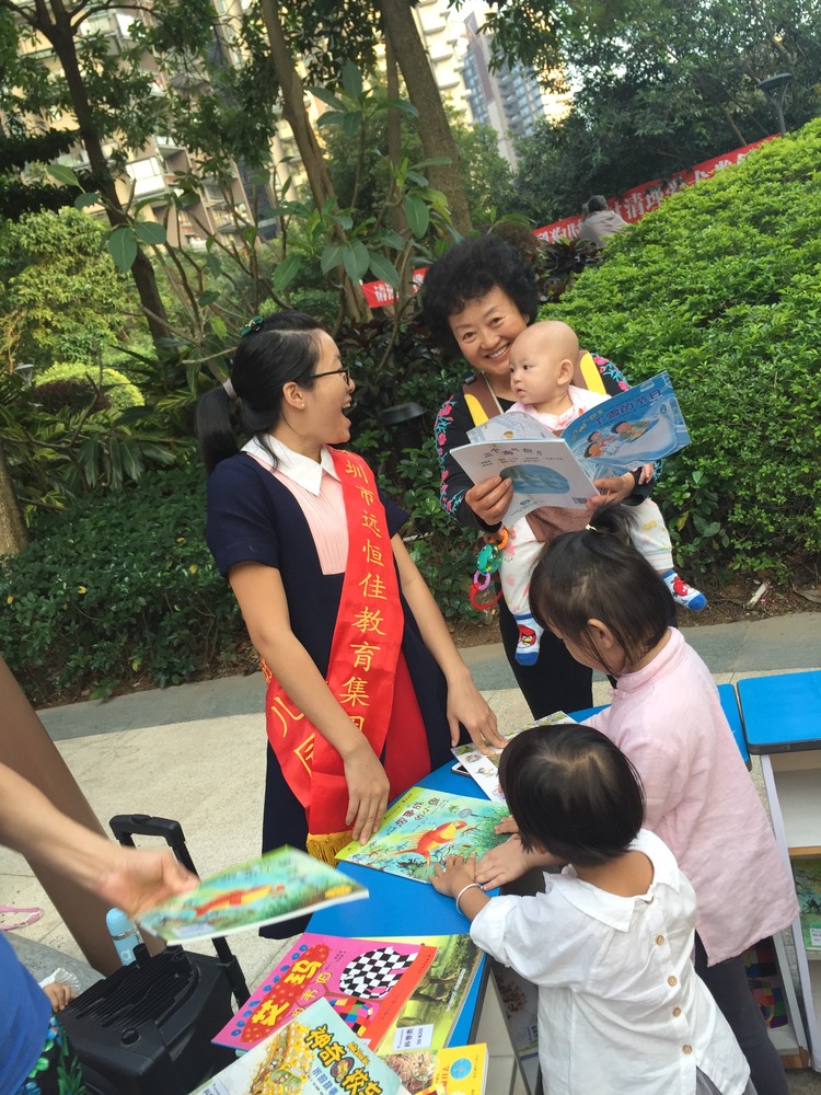 在園內(nèi)匯演的同時(shí),我們的圖書進(jìn)小區(qū)也在進(jìn)行著。小朋友們?cè)诩议L的領(lǐng)下都在聚精會(huì)神的閱讀。
