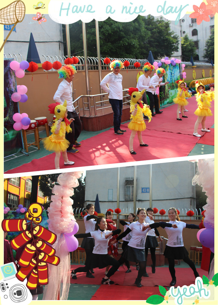 爸爸隊(duì)和舞蹈班孩子們的舞蹈《金雞報(bào)曉》和老師們的歌曲《擼起袖子加油干》