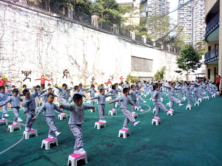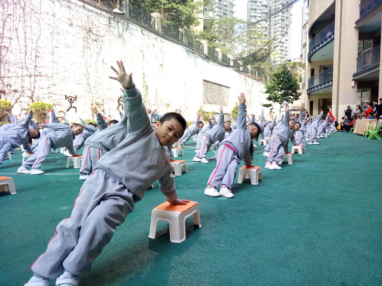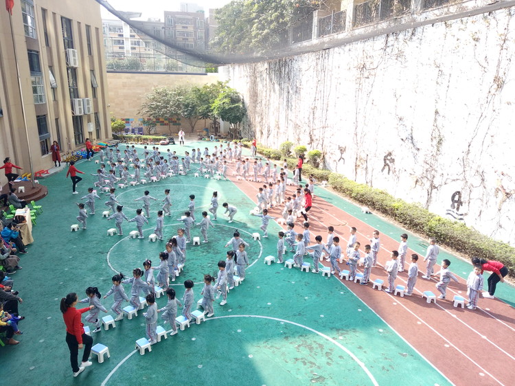 接下來是中班小朋友為我們帶來的板凳操,每個班的板凳顏色都不一樣,讓我們一目了然。別看他們才中班,可是一點都不輸給大班的哥哥姐姐呢!