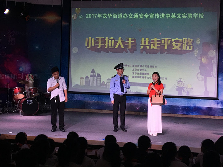 給力:龍華街道預(yù)聯(lián)辦、交警中隊、交管所等多家單位來龍華中英文進行聯(lián)合安全教育