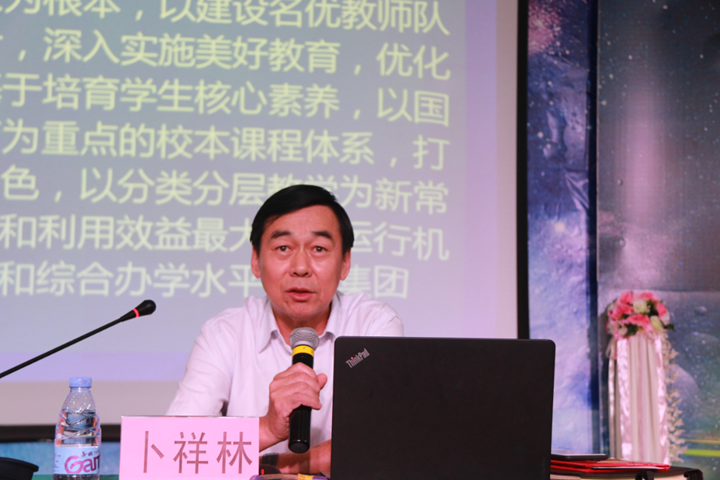 特級教師、學校卜祥林校長會上解讀了新學年重點工作,明確了新學年“辦優(yōu)質(zhì)、特色、品牌學?!钡墓ぷ髂繕?,提出了“以立德樹人為根本,以建設名優(yōu)教師隊伍為保證,全面貫徹黨的教育方針,深入實施美好教育,優(yōu)化學校要素結(jié)構(gòu),完善基于培養(yǎng)學生核心素養(yǎng),以國際理解教育、藝體教育和創(chuàng)客教育為重點的校本課程體系,打造小班化、個性化為特色,以分類分層教學為新常態(tài)的精品課程,健全教育資源配置和利用效益最大化的運行機制和保障機制,全面提高教育質(zhì)量和綜合辦學水平,為集團20年團慶獻禮”的總體工作要求。