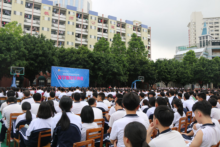 2017年秋季的開學(xué)典禮,由于調(diào)皮的臺(tái)風(fēng)“瑪娃”到粵南部一游,要比平常時(shí)候來得稍晚一些。原本定于9月4日舉行的典禮,到9月6日上午才順利完成,但絲毫不影響開學(xué)孩子們喜悅的心情,絲毫不影響學(xué)校運(yùn)動(dòng)場(chǎng)熱鬧、喜慶的新面貌、新氛圍。
