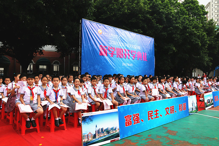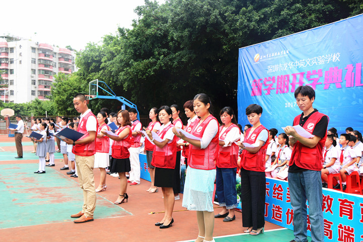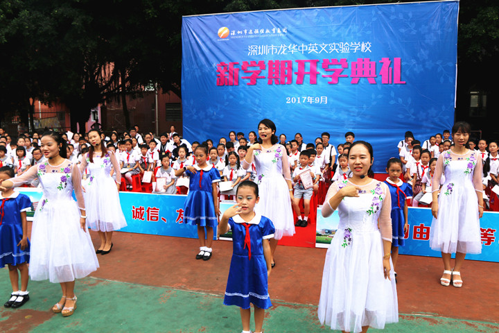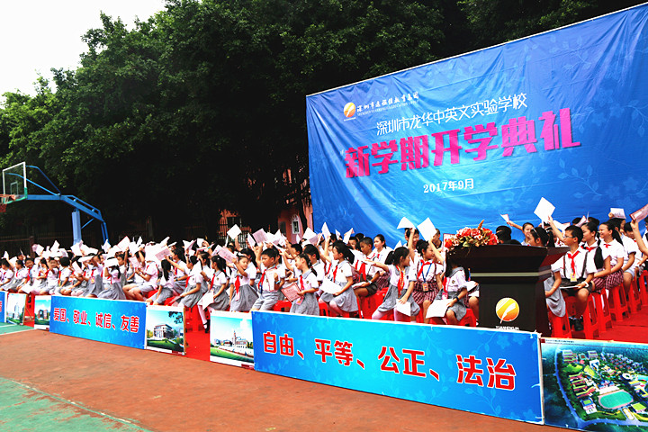 2017年9月6日上午,深圳市龍華中英文實(shí)驗(yàn)學(xué)校在運(yùn)動(dòng)場(chǎng)舉行新學(xué)期開學(xué)典禮。開學(xué)典禮主要分為四個(gè)環(huán)節(jié)進(jìn)行:升國旗儀式;校長致辭;教師、學(xué)生、家長代表激情演講;為上學(xué)期獲得“遠(yuǎn)恒佳獎(jiǎng)學(xué)金”的學(xué)生頒獎(jiǎng)。