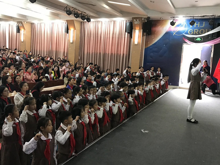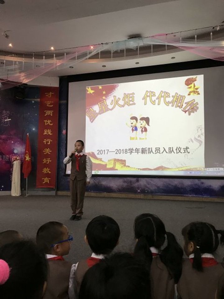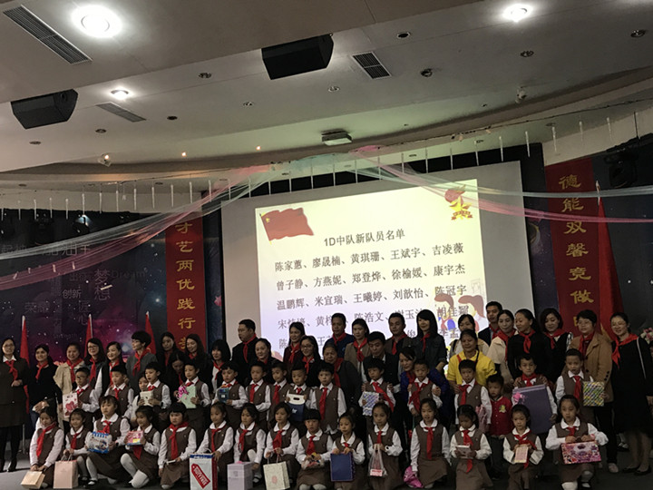 2017年12月15日下午,龍華中英文實驗學校實驗部一年級學生在多功能報告廳舉行了新隊員入隊儀式。為迎接這個神圣的日字子的到來,一年級進行了隊前教育,各中隊提前開展了“隊知識回顧”等系列活動,學生們遞交了書面的入隊申請書。
