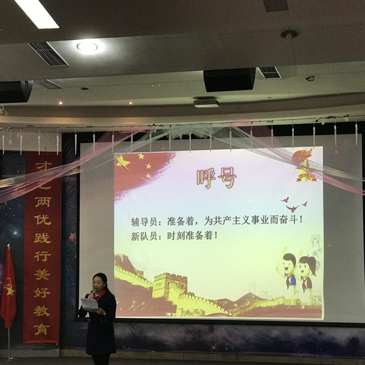 最后,少先隊大隊輔導員張丹主任帶領(lǐng)隊員們呼號,入隊儀式在隊員們“時刻準備著”的呼號聲中圓滿結(jié)束。