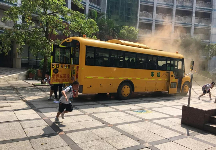 為了進一步增強師生的校車安全意識,提高師生在緊急情況下的避險、自救自護和應變的能力,掌握校車火險來臨時最有效的逃生方法,學校于2018年9月27日上午舉行了校車火險應急疏散演練。演練中,全體隨車教師鎮(zhèn)定自若、學生臨危不懼,師生同舟共濟,演練獲得圓滿成功。