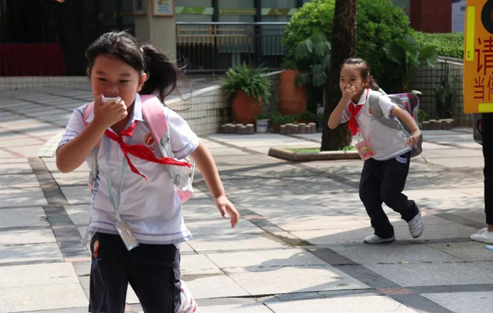 演練時,參演現(xiàn)場模擬校車起火,校車司機打開前門,接送老師打開逃生門,并指引學生疏散到安全地帶。接送老師第一時間清點人數(shù),檢查學生有沒有人員“失聯(lián)”或“傷亡”。整個演練過程緊張有序,從開始疏散到全部安全撤離,只用時1分25秒。