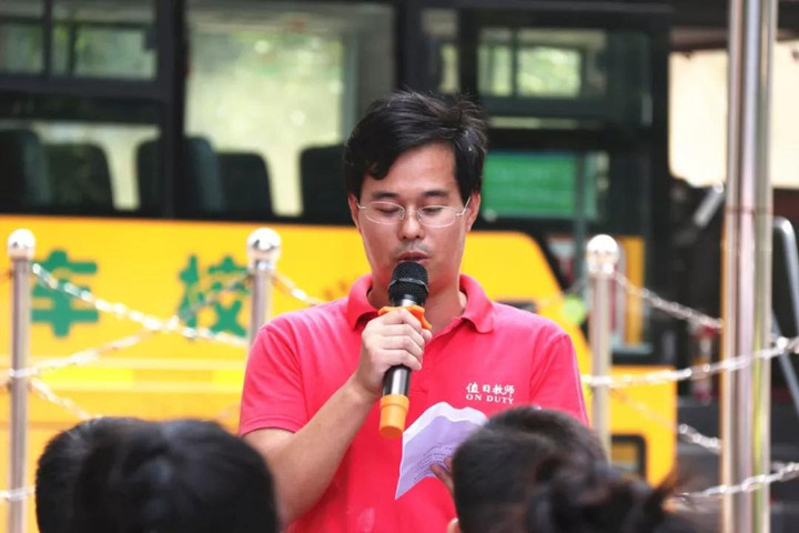 主管校車的張居彥主任強調(diào)校車應急演練的重要性