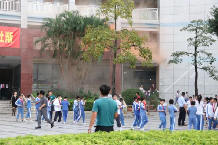 教學(xué)樓二樓某班突發(fā)“火災(zāi)”