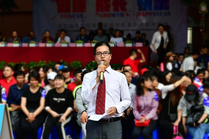 全國名校長、特級教師、學(xué)校卜祥林校長宣布第14屆體育節(jié)開幕